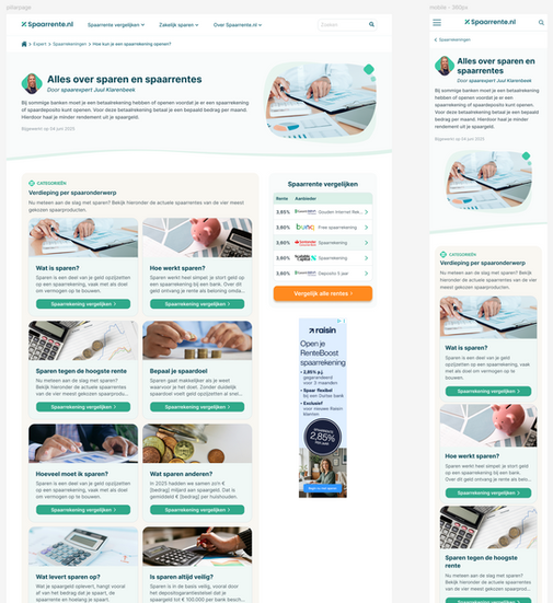 Spaarrente.nl was toe aan een flinke herstructurering: de content was verspreid, niet altijd actueel en de pagina’s waren niet optimaal ingericht om onze expertise te tonen. De website moest niet alleen informatief zijn, maar ook vertrouwen wekken bij gebruikers die op zoek zijn naar actuele en betrouwbare informatie over sparen. Daarnaast was er behoefte aan een schaalbare aanpak zodat nieuwe content snel en consistent gepubliceerd kan worden.
